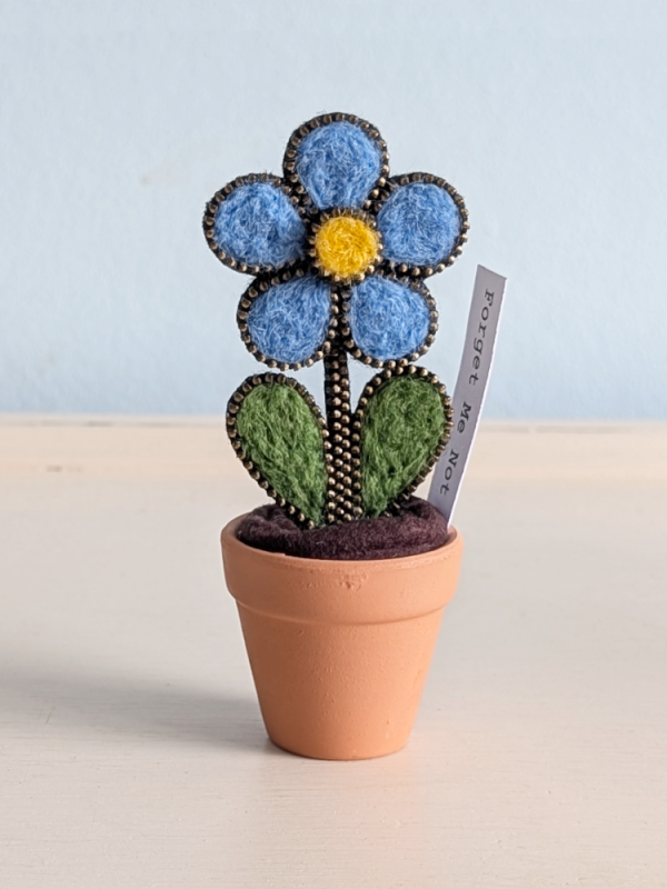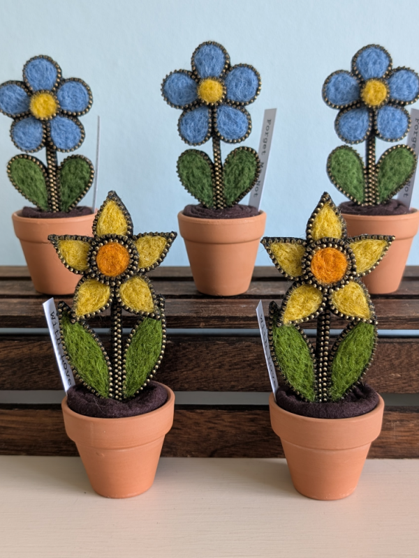 My pieces begin as hand needle-felted artwork, built up using vibrant wool fibres and refined over time through a process of trial, adjustment and careful making. Each design is finished with my signature zip edging, adding structure and a subtle glint of contrast to the soft wool.